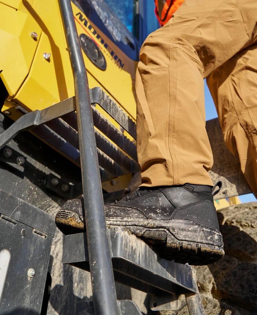 Protects like a work boot and feels like a sneaker. This versatile, waterproof men's 6" style features a tough leather upper and energy-returning cushioning.